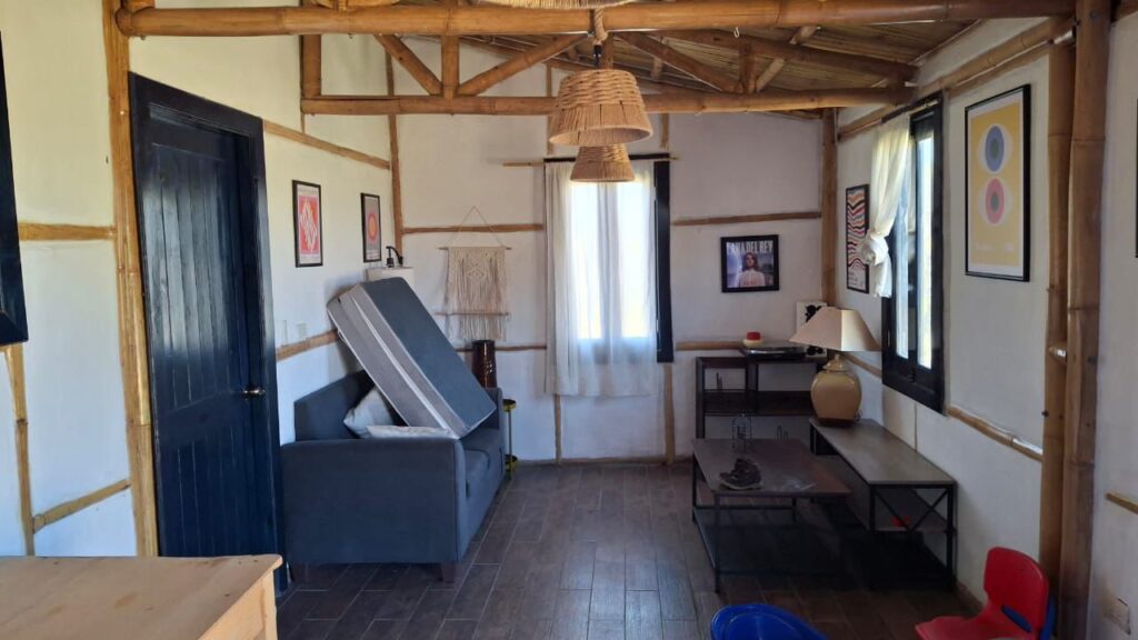 1 cabaña, 2 recamaras, 2 baños completos, cocina y estancia construida con bambu
